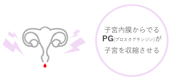 女性の体の仕組みとして、排卵後に妊娠しなかった場合、不要になった子宮内膜がはがれ落ちて出血が起こります(月経)。このときに子宮内膜から分泌されるプロスタグランジンには、子宮を収縮させて、不要になった粘膜を血液とともに体外にスムーズに押し出す働きがあります。このときプロスタグランジンが過剰に分泌されると、子宮が強く収縮し、下腹部痛など月経痛の要因となります。